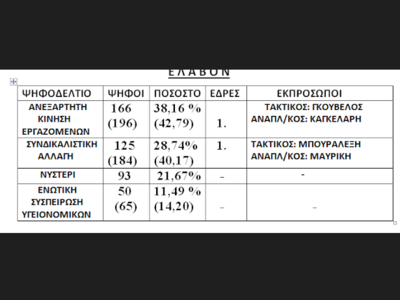 Αυτά είναι τα αποτελέσματα εκλογών για την ανάδειξη των αιρετών εκπροσώπων για το Υπηρεσιακό Συμβούλιο του Νοσοκομείου «Ο Άγιος Ανδρέας».