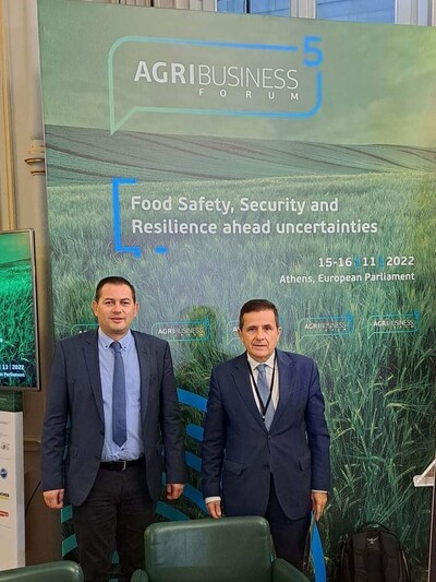 Στο 5o Διεθνές Συνέδριο AgribusinessForum με κεντρικό θέμα «Επισιτιστική ασφάλεια και επάρκεια σε περιόδους αβεβαιότητας» που πραγματοποιήθηκε 15 και 16 Νοεμβρίου 2022 στην αίθουσα του Γραφείου του Ευρωπαϊκού Κοινοβουλίου στην Αθήνα συμμετείχαν ο Αντιπεριφερειάρχης Αγροτικής Ανάπτυξης, Θεόδωρος Βασιλόπουλος, με τον Εντεταλμένο σύμβουλο με αρμοδιότητες Προγραμματισμού, Μελετών και Αναπτυξιακών Προγραμμάτων Αγροδιατροφής, Παναγιώτη Σακελλαρόπουλο και τον επιστημονικό συνεργάτη της ΠΔΕ, Φάνη Ζαχαράτο.