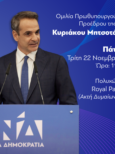 Πυρετώδεις προετοιμασίες στη Δ.Ε.Ε.Π. Ν.Δ. Αχαΐας για το διήμερο οδοιπορικό του Πρωθυπουργού και Προέδρου της Ν.Δ. κ. Κυριάκου Μητσοτάκη στην Αχαΐα όπου την προσεχή Τρίτη 22 Νοεμβρίου, πρώτη ημέρα της επίσκεψης, θα μιλήσει σε ανοιχτή εκδήλωση στον πολυχώρο «ROYAL» (Ακτή Δυμαίων 51) στην Πάτρα, αναφέρει η ανακοίνωση της ΔΕΕΠ Αχαΐας. "Προχθές το βράδυ συνεδρίασε η Διοικούσα Επιτροπή Εκλογικής Περιφέρειας Αχαΐας της Νέας Δημοκρατίας και ο Πρόεδρος Αντώνης Κουνάβης έδωσε το στίγμα της εκδήλωσης. Από σήμερα κλιμάκια στελεχών περιοδεύουν στην πόλη και στις έδρες – διαμερίσματα των υπόλοιπων Δήμων της Αχαΐας μοιράζοντας προσκλήσεις για την εκδήλωση της προσεχούς Τρίτης ενώ η συνεδρίαση της Δ.Ε.Ε.Π. διακόπηκε και θα συνεχίζεται κάθε βράδυ μέχρι και την Δευτέρα 21 Νοεμβρίου".