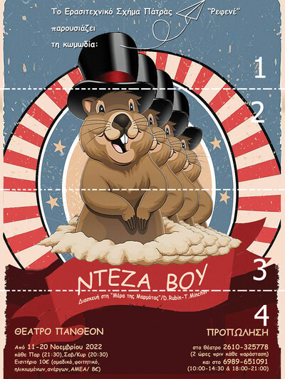 Στις 18, 19 και 20/11/2022 - Πρόκειται για τη θεατρική μεταφορά της κινηματογραφικής επιτυχίας «Η Μέρα της Μαρμότας»