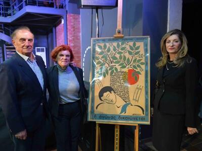 Στο χώρο των Παλαιών Σφαγείων εκτίθετο και εικαστικό έργο το οποίο πέρυσι δωρίσθηκε από τον Δημοσθένη Σαμούρη, αδελφό του πατρινού φοιτητή Γιώργου Σαμούρη που δολοφονήθηκε στην Αθήνα από τη Χούντα κατά την εξέγερση του Πολυτεχνείου. Το έργο συγκαταλέγεται μεταξύ αυτών που αποτελούν τη μόνιμη συλλογή της Δημοτικής Πινακοθήκης.