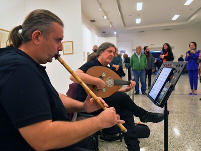 Τα εγκαίνια της έκθεσης «έντυσε» με ήχους από την ανατολή και τη Μικρά Ασία μουσικό σύνολο του Δημοτικού Ωδείου Πατρών με τον Ευγένιο Βούλγαρη