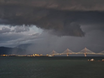 Δείτε τις φωτογραφίες λίγο πριν βραδιάσει με τα σύννεφα να απειλούν την Πάτρα, ενώ ορατή είναι και η "κουρτίνα" βροχής στην περιοχή της Ναυπάκτου.