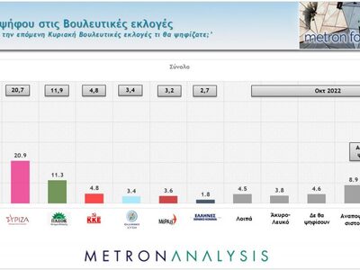 Η Metron Analysis έκανε και την εκτίμηση ψήφου που αφορά στην εκτίμηση των ποσοστών των κομμάτων χωρίς να συμπεριλαμβάνεται η αδιευκρίνιστη ψήφος (δηλαδή εξαιρουμένων των απαντήσεων όπως ‘Δεν έχω αποφασίσει’, ‘Δεν γνωρίζω’, ‘Δεν απαντώ’, ‘Άκυρο’, ‘Λευκό’).