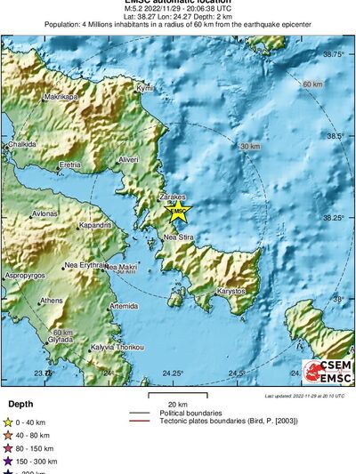 Το Ευρωμεσογειακό Ινστιτούτο δίνει τον σεισμό στην Εύβοια 5,1 Ρίχτερ με επίκεντρο τα δέκα χιλιόμετρα από τα Νέα Στύρα.