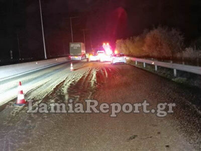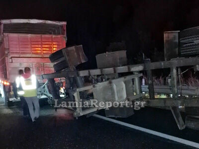 Η εκτροπή - ανατροπή του φορτηγού έγινε στις 9:00΄ το βράδυ της Τρίτης, στο 197χλμ της εθνικής οδού, λίγο πριν τα διόδια της Αγίας Τριάδας, στο ρεύμα προς Αθήνα.