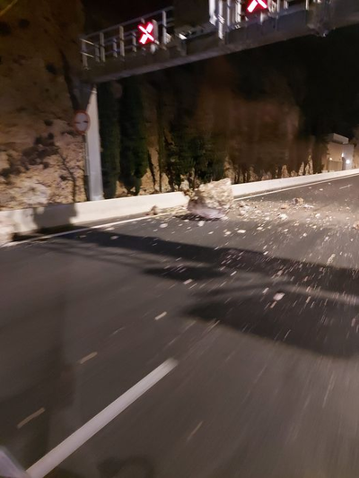 Σύμφωνα με την ΕΡΤ, από οι βράχοι χτύπησαν 2 αυτοκίνητα, χωρίς ευτυχώς να υπάρξει τραυματισμός.