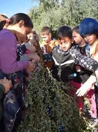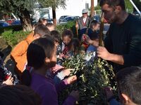 Προηγήθηκε το θεωρητικό σκέλος στο σχολείο για όλα τα στάδια της διαδικασίας του μαζέματος της ελιάς, μέχρι αυτή να καταλήξει να γίνει λάδι και αμέσως μετά τα παιδιά με τους εκπαιδευτικούς τους, κατευθύνθηκαν με τα πόδια στην πλατεία Κοσιώνη, όπου είδαν και πρακτικά το μάζεμα της ελιάς.