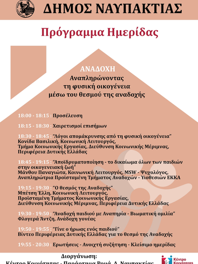19:15 - 19:30: «Η λειτουργία του θεσμού της Αναδοχής»