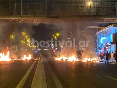 Στο σημείο αυτό, οι διαμαρτυρόμενοι απέκλεισαν για δύο ώρες το οδόστρωμα και στα δύο ρεύματα κυκλοφορίας, βάζοντας φωτιές σε κάδους με σκουπίδια, ενώ πετούσαν αντικείμενα σε αστυνομικούς που κλήθηκαν επί τόπου.