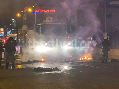 Μία δεύτερη εστία έντασης εκδηλώθηκε τα μεσάνυχτα στην οδό Λαγκαδά, μετά την πεζογέφυρα της Σταυρούπολης.