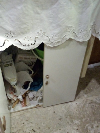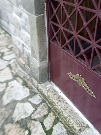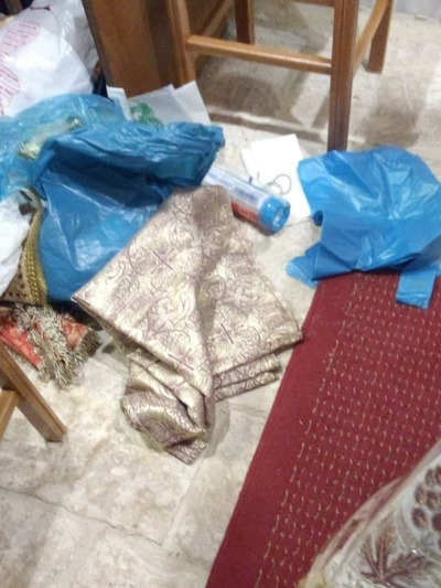 Η κεντρική πόρτα ήταν παραβιασμένη ενώ υπήρχε μία μεγάλη τρύπα στο σημείο της σχισμής στο ξύλινο παγκάρι.