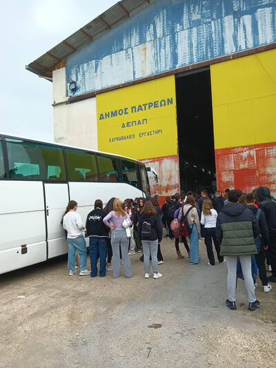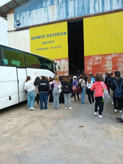 Η επίσκεψη αφορούσε σε όλο το Γυμνάσιο και το Καρναβαλικό Εργαστήρι επισκέφτηκαν συνολικά 200 μαθητές με τη συνοδεία των καθηγητών τους. Οι μαθητές ξεναγήθηκαν στους εξωτερικούς και εσωτερικούς χώρους, είχαν διεξοδική ενημέρωση για την ιστορία του Καρναβαλικού Εργαστηρίου, την τεχνοτροπία των καρναβαλικών αρμάτων και το εύρος των κατασκευών που πραγματοποιούνται εκεί παίρνοντας μια σφαιρική αλλά ικανή εικόνα των δραστηριοτήτων που επιτελούνται στο Καρναβαλικό Εργαστήρι από τον υπεύθυνο του Καρναβαλικού Εργαστηρίου, δημιουργό, κατασκευαστή Νίκο Λιβάνη και την Χριστίνα Κουφάκη, εξωτερική συνεργάτη της ΚΕΔΗΠ – Κοινωφελούς Επιχείρησης Πατρινό Καρναβάλι.