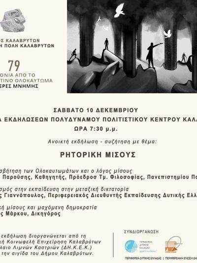 Ανοικτή εκδήλωση με θέμα "Ρητορική Μίσους" σήμερα 10/12 στο Πολυδύναμο Πολιτιστικό Κέντρο Καλαβρύτων.