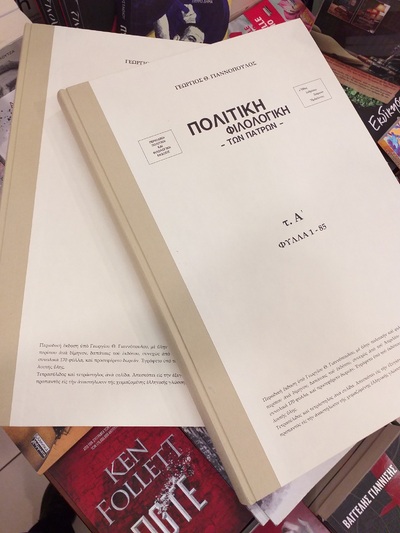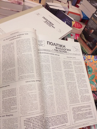 Μία ευχάριστη έκπληξη περίμενε την υπεύθυνη του γνωστού Πατρινού βιβλιοπωλείου «Η Γωνιά του Βιβλίου», Ασπασία Παπαχρίστου, στην οποία διατέθηκε τιμής ένεκεν ή για την ακρίβεια δωρήθηκε το δίτομο έργο του συμπολίτη συνταξιούχου δικηγόρου και συγγραφέα Γεωργίου Θ. Γιαννόπουλου «Πολιτική – Φιλολογική των Πατρών». Πρόκειται για ένα εντυπωσιακό έργο που τυπώθηκε σε 5 μόλις αντίτυπα (υποθέτουμε πως ένα απ’ αυτά θα πάει και στη Δημοτική Βιβλιοθήκη Πατρών μιας και η αξία του είναι σημαντική και για τους σπουδαστές φιλολογίας, ιστορίας, φιλοσοφίας, πολιτικής επιστήμης και όχι μόνο) που περιλαμβάνει και τα 170 φύλλα που είχαν εκδοθεί και γραφεί από τον Γεώργιο Γιαννόπουλο το διάστημα από τον Απρίλιο του 1989 μέχρι και τον Σεπτέμβριο του 2020. Ο 1ος τόμος περιέχει το υλικό από το 1ο φύλλο της συγκεκριμένης περιοδικής έκδοσης – εφημερίδας έως και το 85ο και ο Β’ τόμος το υλικό από το 86ο έως και το 170ο.