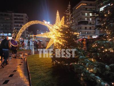 "Άναψε" το Χριστουγεννιάτικο δέντρο στην πλατεία Γεωργίου.