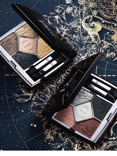 Σε μεγάλη ζήτηση είναι η απόχρωση του κραγιόν Rouge Dior 999, ένα πολυτελές κόκκινο με βελούδινο αποτέλεσμα. Για έξτρα λάμψη βινυλίου περάστε από πάνω το Dior Addict, το κραγιόν που γλιστρά απολαυστικά στα χείλη, στην απόχρωση 974 Zodiac Red. Σαν primer χειλιών, τοποθετείστε το διάφανο velvet balm Rouge Dior 001 Diornatural. Στις σκιές με την ακαταμάχητη κρεμώδη υφή «ξεπουλάει» η συσκευασία 359 Cosmic Eyes σε χρυσό και μπρονζέ, καθώς κολακεύουν όλα τα μάτια.