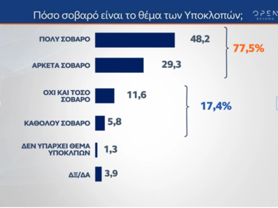 Όσον αφορά στο ζήτημα των υποκλοπών το 77,5% των πολιτών το θεωρούν πολύ ή αρκετά σοβαρό, ενώ μόλις το 17,4% των πολιτών το θεωρούν ζήτημα μικρότερης σημασίας. Όταν πρωτοεμφανίστηκε το ζήτημα των υποκλοπών τον περασμένο Σεπτέμβριο με την υπόθεση του Νίκου Ανδρουλάκη, μόλις το 66% το θεωρούσαν σημαντικό ζήτημα. Σύμφωνα με τον κ. Μαύρο, μπορεί ακόμα και σήμερα να μην αποτελούν οι παρακολουθήσεις βασικό κριτήριο στην επιλογήψήφου των πολιτών, ωστόσο κάνουν σημαντική ζημιά σε ζητήματα ηθικής της κυβέρνησης.