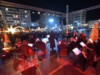 Μια ιστορία βγαλμένη μέσα από ένα χριστουγεννιάτικο παραμύθι, ντυμένη με ήχο, νότες και φωνές «πλημμύρισε» το βράδυ της Παρασκευής 16 Δεκεμβρίου κάθε γωνιά της πλατείας Γεωργίου μέσα από την καταλυτική παρουσία της Ορχήστρας Νυκτών Εγχόρδων του Δήμου Πατρέων «Θανάσης Τσιπινάκης».