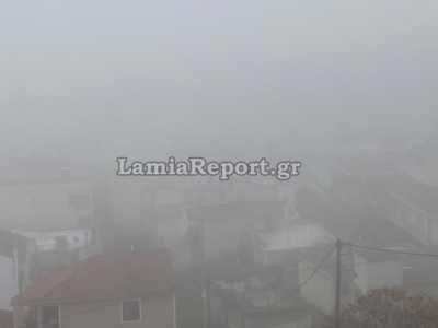 Ένα «πέπλο» ομίχλης απλώθηκε πάνω από τη Λαμία «εξαφανίζοντας» την πόλη. Η πυκνή ομίχλη χρειάστηκε μόλις λίγα λεπτά το πρωί της Κυριακής για να σκεπάσει την πόλη και όλη την κοιλάδα του Σπερχειού.