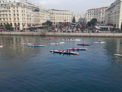 Πρόκειται για περίπου 80 μέλη του τμήματος παράκτιας κωπηλασίας ενηλίκων του Ομίλου Φίλων Θαλάσσης τα οποία συγκεντρώθηκαν στις εγκαταστάσεις του Ομίλου Φίλων Θαλάσσης, φόρεσαν τις στολές και τους σκούφους και έριξαν τα σκάφη στο νερό για να διασκεδάσουν οι ίδιοι, αλλά και να υπενθυμίσουν σε όσους βρισκόταν κατά μήκος της Νέας καιτης Παλιάς Παραλίας της Θεσσαλονίκης, ότι πλησιάζουν τα Χριστούγεννα.