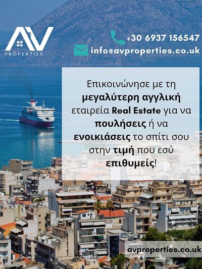 Κατά αυτόν τον τρόπο, εάν θέλετε να πουλήσετε ή να ενοικιάσετε το ακίνητό σας, μη διστάσετε να επικοινωνήσετε με τα έμπειρα στελέχη της AV Properties στο 6937 156547 ή μέσω email στο [email protected].