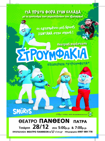 Η παιδική θεατρική παράσταση «Στρουμφάκια, Επιχείρηση Στρουμφίτα» που ενθουσίασε μικρούς και μεγάλους σε όλη την Ελλάδα, έρχεται στην Πάτρα στη σκηνή του θεάτρου Πάνθεον την Τετάρτη 28 Δεκεμβρίου 2022. Θα δοθούν 2 παραστάσεις στις 5 και στις 7 το απόγευμα.