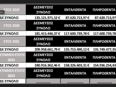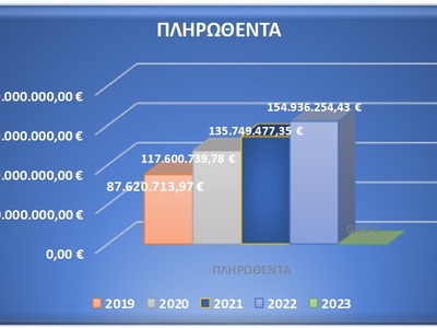 Γ. Πληρωθέντα: Το 2019 το ποσό αυτό ανερχόταν σε 87.620.713,97 ευρώ, το 2020 σε 117.600.739,78 ευρώ, το 2021 σε 135.749.477,35 ευρώ και φέτος, με τελευταία ημερομηνία την 30η Νοεμβρίου 2022, έφτασε στα 154.936.254,43 ευρώ.