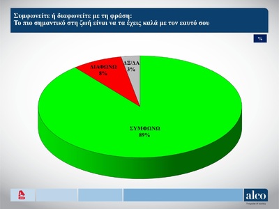 Σημειώνεται ότι σχεδόν ένας στους δύο – ποσοστό 46% – δηλώνει ότι θα μπορούσε να παρανομήσει προκειμένου να βοηθήσει ένα πρόσωπο που αγαπά, ενώ σχεδόν εννέα στους δέκα συμφωνούν ότι το πιο σημαντικό στη ζωή είναι να τα έχεις καλά με τον εαυτό σου. Την ίδια στιγμή, το 81% διαφωνεί στο ότι το σημαντικότερο στη ζωή είναι η επιτυχία με κάθε κόστος.