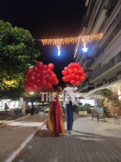 Το απόγευμα της Τετάρτης εκδήλωση πραγματοποιήθηκε στην Τριών Ναυάρχων και Κορίνθου. Μουσική, μπαλόνια και ξυλοπόδαροι έδωσαν το εορταστικό σύνθημα βάζοντας καταστηματάρχες, πελάτες και διερχόμενους σε χριστουγεννιάτικη διάθεση.