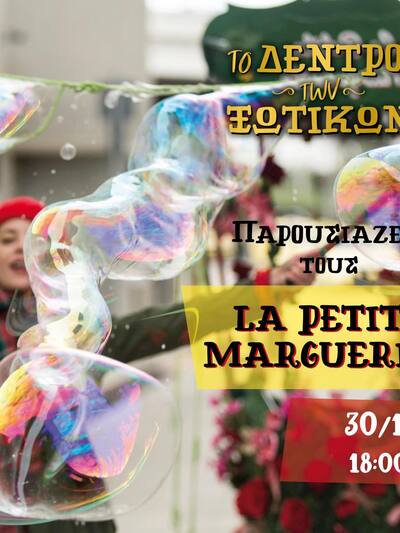 H καλλιτεχνική ομάδα La Petite Marguerite δημιουργεί ένα διαδραστικό Christmas Magic Bubble Show. Ένα θεαματικό bubble show, γεμάτο από τεράστιες σαπουνόφουσκες που ζωντανεύει και ενεργοποιεί το παραμυθιακό, την φαντασία και το όνειρο, δίνοντας ιδιαίτερη έμφαση στον εύθραυστο κόσμο της σαπουνόφουσκας, αλλά και στη ρευστότητα της σύγχρονης εποχής.