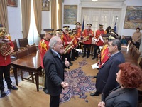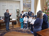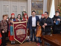 Πλημμύρισε από Πρωτοχρονιάτικα κάλαντα και από γιορτινές μελωδίες σήμερα, Παρασκευή 30 Δεκεμβρίου το πρωί, το Δημαρχείο της Πάτρας. Ο Φάρος Ποντίων Πάτρας, η Δημοτική Μουσική, τα παιδιά από το Σώμα Ελληνικού Οδηγισμού και ο Παγκαλαβρυτινός Σύλλογος Πάτρας, έψαλλαν, με τη σειρά, τα κάλαντα στο Δήμαρχο Πατρέων, Κώστα Πελετίδη και αντάλλαξαν ευχές μαζί του.