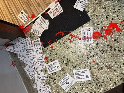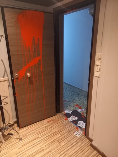 Επίθεση αντιεξουσιαστών στο πολιτικό γραφείο της βουλευτή της Νέας Δημοκρατίας Χριστίνας Αλεξοπούλου στην πλατεία Γεωργίου σημειώθηκε σήμερα το απόγευμα. Άγνωστοι πέταξαν κόκκινες μπογιές και τρικάκια.