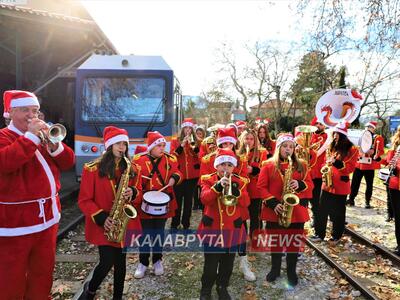 Τα πρωτοχρονιάτικα κάλαντα έπαιξαν, όπως έχουν καθιερώσει, οι μουσικοί της Φιλαρμονικής του Δήμου Καλαβρύτων. Το πρωί της παραμονής περπάτησαν σε όλους του δρόμους και τα σοκάκια των Καλαβρύτων γεμίζοντας με χαρούμενες μελωδίες και τηρώντας ένα πραγματικά ωραίο έθιμο. Φυσικά δεν παρέλειψαν να υποδεχτούν και τον Οδοντωτό...
