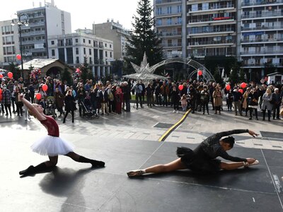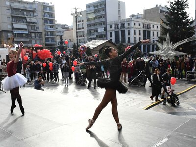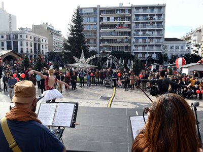 Από τις 11.30 το πρωί και για περισσότερο από δύο ώρες στο «Χριστουγεννιάτικο Χωριό» και στο πλαίσιο της ενότητας του Πολιτιστικού Οργανισμού «Χριστούγεννα είναι…», ξετυλίχθηκε ένα γιορτινό μουσικό «κουβάρι» συνοδεία χορευτών με τη μουσική, το τραγούδι και την κίνηση να συναντούν το πνεύμα των ημερών.