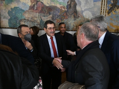 Με την ευχή ο λαός ενωμένος να γίνει πρωταγωνιστής των εξελίξεων τη νέα χρονιά, να πάρει τις τύχες του στα χέρια του και να αγωνιστεί για όλα όσα δικαιούται, ο Δήμαρχος Πατρέων, Κώστας Πελετίδης, έκοψε σήμερα Κυριακή 1η Ιανουαρίου 2023, στο Δημαρχείο, παρουσία του Μητροπολίτη Πατρών κ.κ. Χρυσοστόμου και δεκάδων προσκεκλημένων, την Πρωτοχρονιάτικη πίτα και στη συνέχεια αντάλλαξε ευχές με όλους.