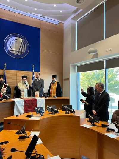 Αργότερα, ο κ. Κατσανιώτης μετέβη στην έδρα της Περιφέρειας Δυτικής Ελλάδας όπου πραγματοποιήθηκε εκδήλωση ανταλλαγής ευχών με τον Περιφερειάρχη, Νεκτάριο Φαρμάκη και στελέχη της Περιφερειακής Αρχής, καθώς επίσης με εκπροσώπους Δήμων, παραγωγικών και επιστημονικών φορέων της Αχαΐας.