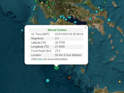 Σεισμική δόνηση μεγέθους 4,3 βαθμών της κλίμακας Ρίχτερ σημειώθηκε το πρωί της Δευτέρας σε θαλάσσια περιοχή της Μεσσηνίας.