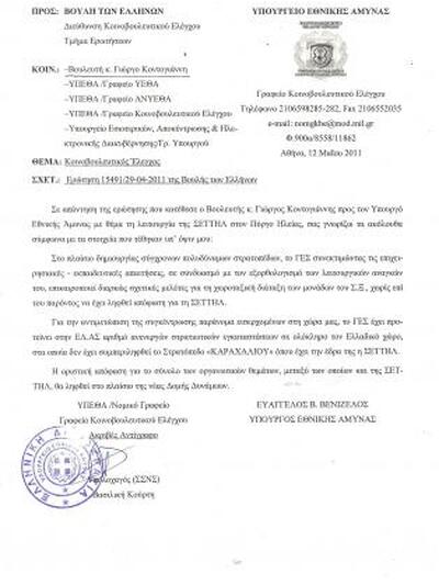 Συγκεκριμένα η απάντηση του Υπουργού Εθνικής Άμυνας έχει ως εξής: