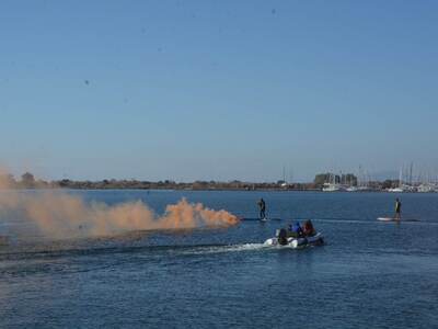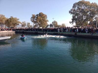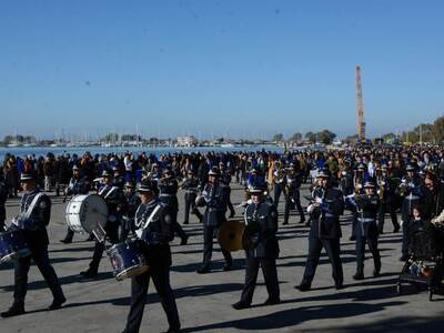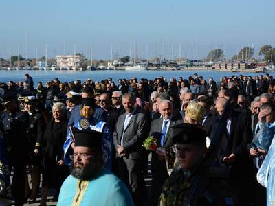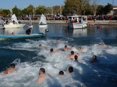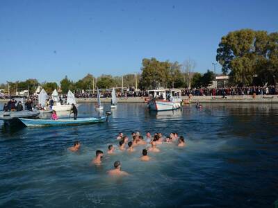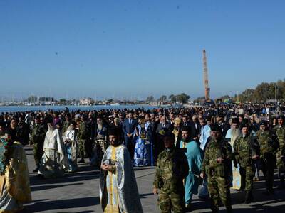 Ακολούθως, σχηματίστηκε πομπή, συνοδεία της Δημοτικής Φιλαρμονικής «Χ.Καψάλης», με προορισμό το Λιμάνι του Μεσολογγίου όπου έλαβε χώρα η καθιερωμένη κατάδυση του Τιμίου Σταυρού και ο Αγιασμός των υδάτων με μεγάλη συμμετοχή πολιτών και την παρουσία των Βουλευτών, Κώστα Καραγκούνη, Γ. Βαρεμένου και Θ. Μωραΐτη, του Αντιπεριφερειάρχη, Αθ. Μαυρομάτη, Αντιδημάρχων και Δημοτικών Συμβούλων, των Διοικητών, του 2/39 Συντάγματος Ευζώνων, Π.Υ. Μεσολογγίου και Αιτωλικού, του Διευθυντή της Α.Δ. Αιτωλίας, της Λιμενάρχη Μεσολογγίου, πολιτευτών κ.α