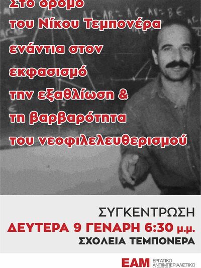 Πέρασαν 32 χρόνια από κείνο το βράδυ του 1991 που ο σύντροφος μας, ο δάσκαλος Νίκος Τεμπονέρας χωρίς δεύτερη σκέψη έδωσε τη ζωή του, για να προστατέψει τη ζωή και την συλλογική διεκδίκηση των μαθητών του από τους λοστοφόρους του παρακράτους και του κράτους της δεξιάς.