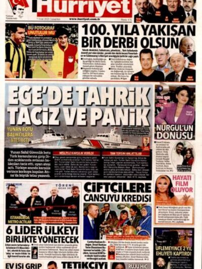 Πιο συγκεκριμένα, η τουρκική εφημερίδα αναφέρει στον τίτλο της: «Πρόκληση, παρενόχληση και πανικός στο Αιγαίο», και σημειώνει ψευδώς στα πλαίσια της τουρκικής προπαγάνδας ότι «ελληνικό σκάφος πυροβόλησε στους Τούρκους αλιείς», κάτι που δεν έχει σχέση με την πραγματικότητα, καθώς το ελληνικό πλήρωμα προχώρησε σε προειδοποιητικές βολές μετά την εμπλοκή της τουρκικής ακταιωρού, η οποία αποπειράθηκε να εμβολίσει το ελληνικό σκάφος.