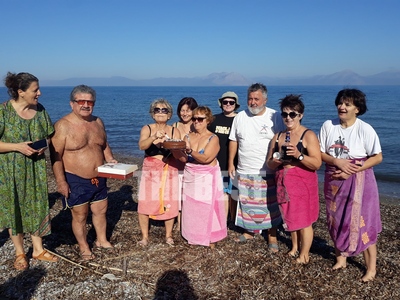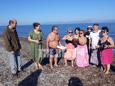 Οι χειμερινοί κολυμβητές της παραλίας Κάτω Αλισσού, την Κυριακή 8 Ιανουαρίου, αφού απόλαυσαν το κολύμπι στη θάλασσα στη συνέχεια έκοψαν την πρωτοχρονιάτικη πίτα τους και αντάλλαξαν ευχές για τη νέα χρονιά.