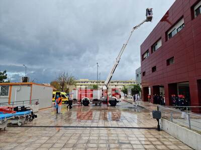 Πυροσβέστες, διασώστες και γιατροί ήταν σε ετοιμότητα να εφαρμόσουν το σενάριο της άσκησης που προέβλεπε την εκκένωση του νοσοκομείου μετά από σεισμό.