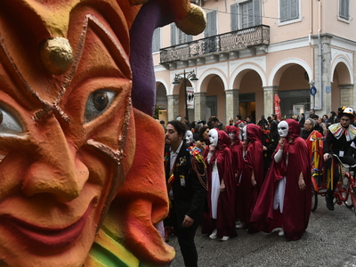 Από το μπαλκόνι του Δημοτικού Θεάτρου «Απόλλων» η Χορευτική ομάδα Rising Flames της Μαρίας Σοϊλέ παρουσίασε ένα εντυπωσιακό καλλιτεχνικό δρώμενο που αντλούσε την έμπνευσή του από το έργο “Φάντασμα της Όπερας”. Οι χορευτικές κινήσεις των μεταμφιεσμένων με κόκκινες κάπες και μάσκες κοριτσιών (face painting από τα Εκπαιδευτήρια Βέργη) με τη διάσημη μουσική του έργου έκλεψαν τις εντυπώσεις. Από εκεί άρχισε και η πομπή του πρώτου μουσικού άρματος με την Πρόεδρο της ΚΕΔΗΠ Καρναβάλι Πάτρας Ήρα Κουρή, τη Βασίλισσα του Πατρινού Καρναβαλιού 2023 Κατερίνα Βενέρη-Σιούλη, μέλη Κριτικής Επιτροπής Π.Κ. 2023, εργαζομένους της ΚΕΔΗΠ, εθελοντές του Πατρινού Καρναβαλιού 2023, τη Χορευτική ομάδα Rising Flames και Καρναβαλιστές που ακολουθώντας τη διαδρομή Κορίνθου-Αγίου Νικολάου. Από την πλατεία Τριών Συμμάχων ανηφόρισε τον πεζόδρομο της Αγίου Νικολάου η πομπή του δεύτερου μουσικού άρματος με την Τελάλισσα του Πατρινού Καρναβαλιού 2023 να μεταφέρει με την ηχηρή φωνή και τη γνωστή της εξωστρέφεια το χαρμόσυνο και αισιόδοξο μήνυμα της έναρξης. Τη συνόδευαν ο Αντιπρόεδρος Δ.Σ. ΚΕΔΗΠ Καρναβάλι Πάτρας Δημήτρης Δημησιάνος, μέλη Διοικητικού Συμβουλίου της ΚΕΔΗΠ Καρναβάλι Πάτρας, μέλη της Γνωμοδοτικής Επιτροπής Π.Κ.2023, εθελοντές, μεταμφιεσμένοι ποδηλάτες και Καρναβαλιστές. Οι δυο πομπές συναντήθηκαν στη συμβολή των οδών Μαιζώνος και Αγίου Νικολάου. Από εκεί η κοινή καρναβαλική πομπή του λαβάρου του Πατρινού Καρναβαλιού κατευθύνθηκε μέσω της οδού Μαιζώνος προς το Δημαρχείο Πατρών.