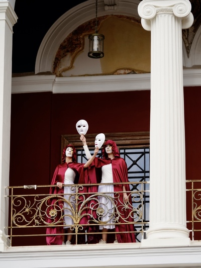 Art Δρώμενο από την Χορευτική ομάδα Rising Flames , εμπνευσμένο από το έργο “Φάντασμα της Όπερας” (face painting από τα Εκπαιδευτήρια Βέργη) στο Δημοτικό Θέατρο «Απόλλων».