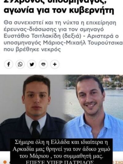 Σε ανάρτησή της στο Instagram, έγραψε συγκεκριμένα: «Σήμερα όλη η Ελλάδα και ιδιαίτερα η Αρκαδία μας θρηνεί για τον άδικο χαμό του Μάριου του συμμαθητή μας. Έπεσε υπέρ πατρίδος κουράγιο και συλλυπητήρια στην οικογένειά του».