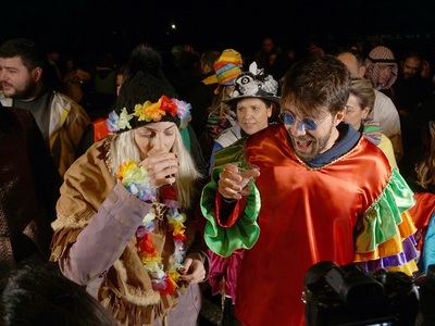 Το μουσικό άρμα έδινε το ρυθμό και η μαυροδάφνη που έφεραν ως δώρο τα πληρώματα μαζί με λουκούμια, τούς κράτησε παρέα έως να τους δοθεί ο επόμενος γρίφος και να ξεκινήσουν την αναζήτηση του αρλεκίνου στην πόλη.