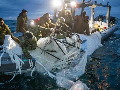 Στη δημοσιότητα έδωσε η αμερικανική Βόρεια Διοίκηση (NORCOM) τις πρώτες επίσημες φωτογραφίες από τα συντρίμμια του κινεζικού κατασκοπευτικού μπαλονιού κατά τη διάρκεια συλλογής τους.