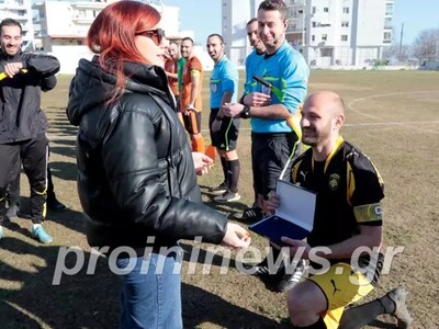 Κι αυτό γιατί ο αρχηγός της ΑΕΚ Καβάλας έκανε πρόταση γάμου στην αγαπημένη του μέσα στον αγωνιστικό χώρο, με ένα πρωτότυπο τρόπο.